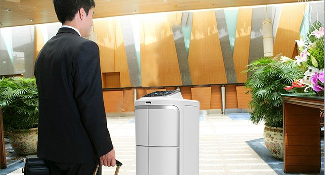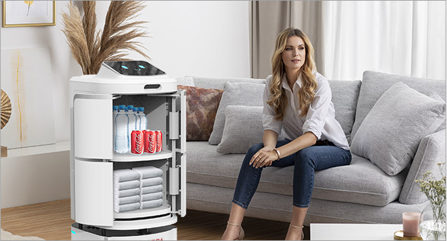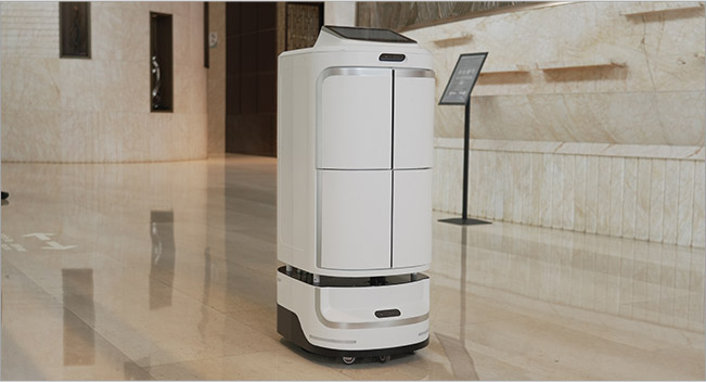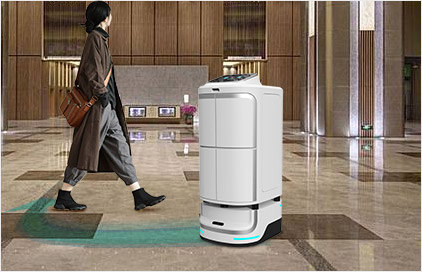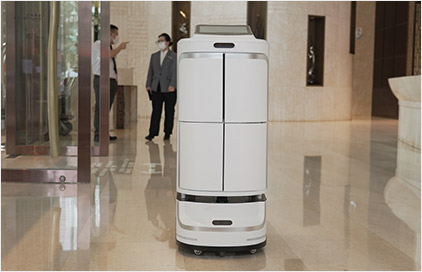 酒店活动信息巡游宣传,定期活动巡游通知;小件快递、外卖送至房间、客人发票递送、部门间文件传达;有梯控的,机器人可以帮助客人按电梯;迎接客人,基本问询。